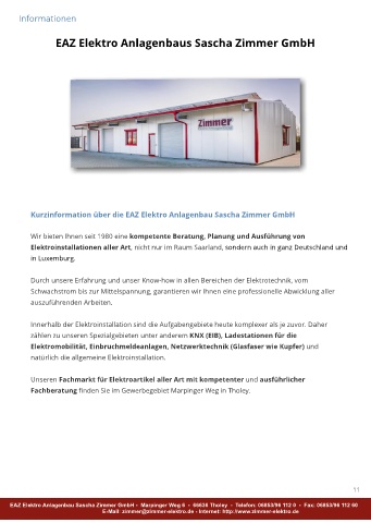 EAZ Elektro Anlagenbau Sascha Zimmer GmbH - Marpinger Weg 6 - 66636 Tholey - Telefon: 06853/96 112 0 - Fax: 06853/96 112 60